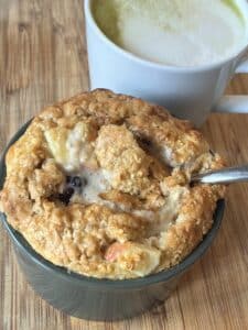 Banana bread served in a mug! This Dairy-free and Egg-free Banana protein mug cake contains...